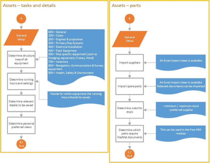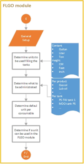 - Define which consumables should be saved. This is often done per product type (Gas oil, Lub oil per type, MDO, HFO, etc.) or per tank (PS FW tank1, MDO tank PS, etc.).