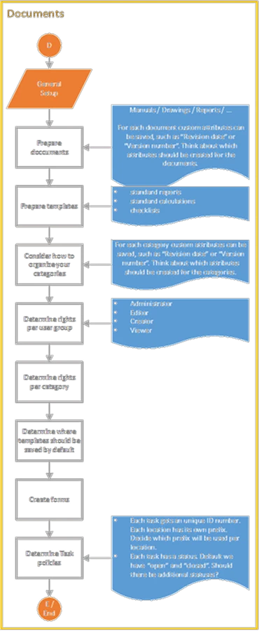 - For each document custom attributes can be saved, such as “Revision date” or “Version number”. Think about which attributes should be created for the documents.